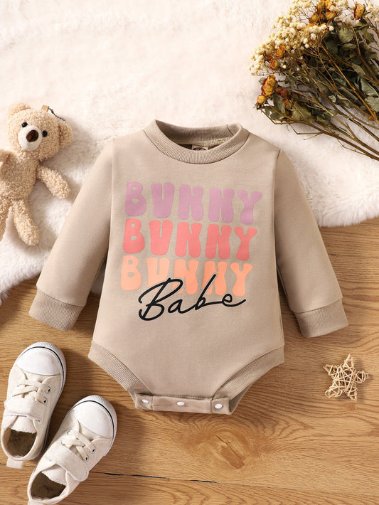 Trendy Baby's Fashion Letter Print Long Sleeve Onesie Jumpsuit