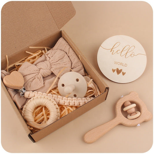 Teething Saliva Towel Set: Nipple Clip Chain, Cotton Towel, Wooden Rabbit Ears