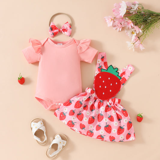 Baby Girl's Summer Short-sleeved Romper Wiot Suspender Skirt Floral Fruit Casual Skirt Suit