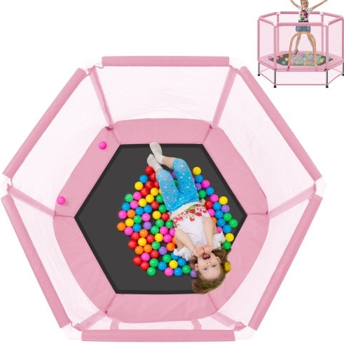 Product Name:55\' Toddlers Trampoline with Safety Enclosure Net and Balls, Indoor Outdoor Mini Trampoline for Kids