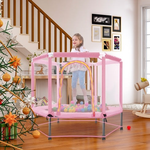 55'' Toddlers Trampoline With Safety Enclosure Net And Balls, Indoor Outdoor Mini Trampoline For Kids