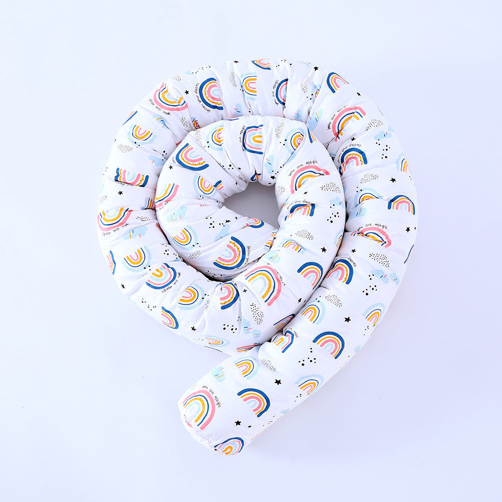 Measuring 12*250CM, this long pillow provides ample length to line the edges of your child's bed, creating a soft barrier for added security and comfort during sleep. The vibrant rainbow printing adds a cheerful touch to any bedroom decor, making bedtime a delightful experience for your child.