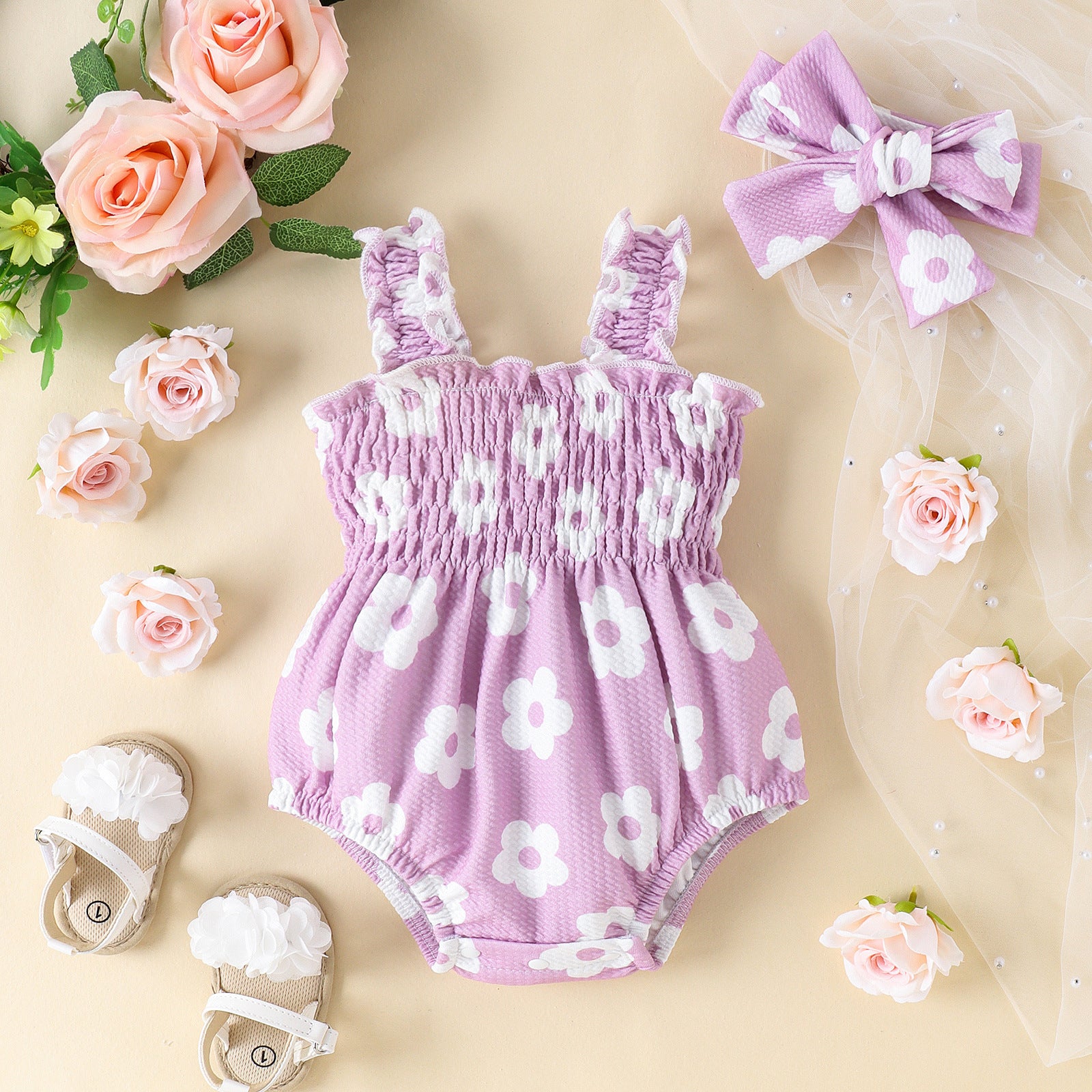 Add a touch of floral elegance to your baby's summer ensemble with this charming romper set. Order now and let your little one shine in style!
