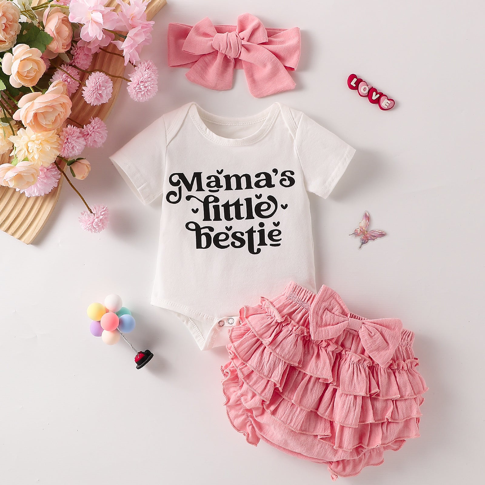 Give your baby girl a stylish and comfortable summer outfit with our Letter Print Romper and Short Skirt set. Order now and let your little one shine in this adorable ensemble!