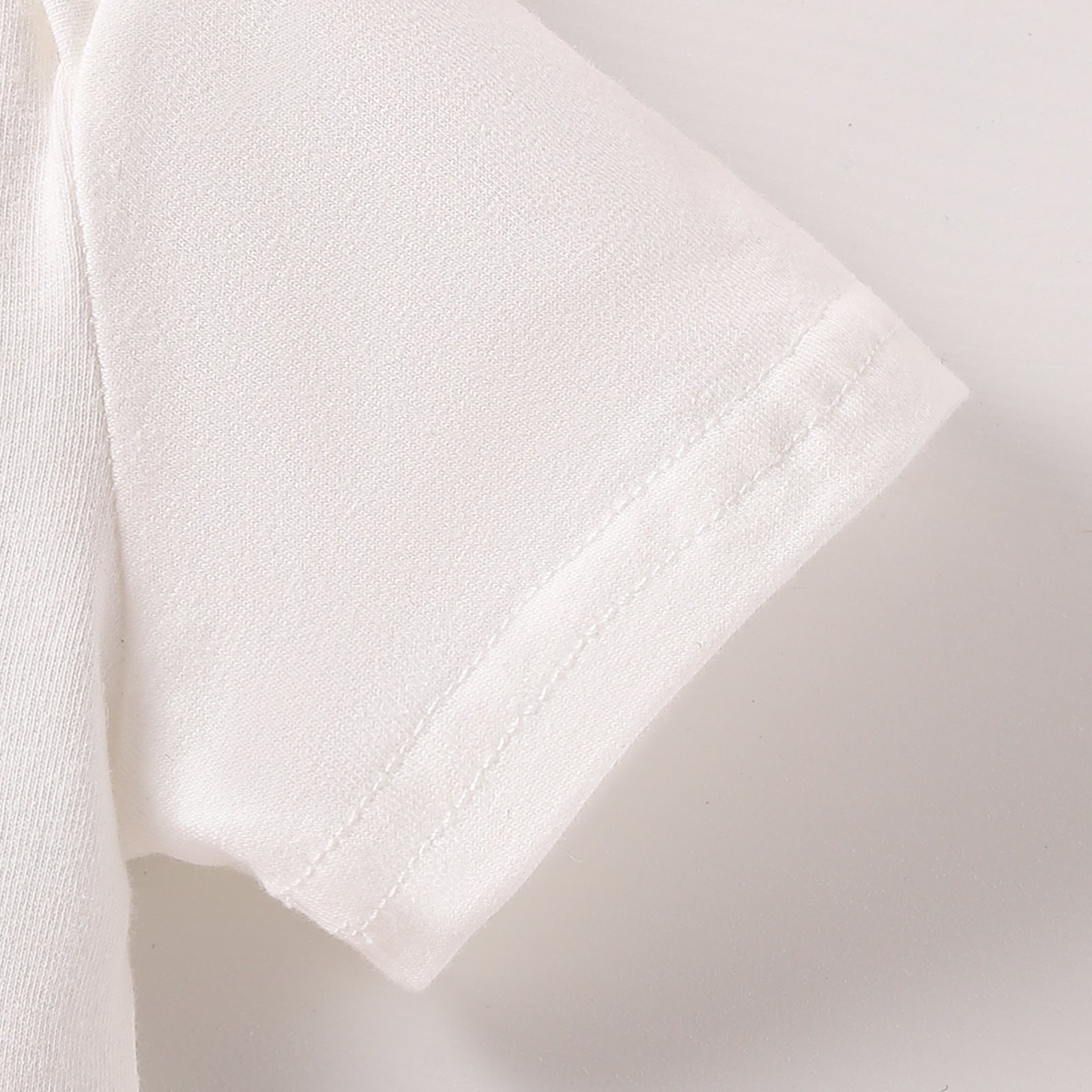 The romper features a delightful letter print pattern that adds a playful touch to the ensemble. Its pullover design makes dressing quick and hassle-free, while the matching skirt completes the look with a touch of sweetness. Available in a pristine white color, this two-piece set is ideal for any occasion.