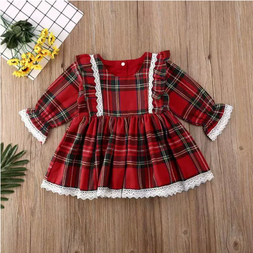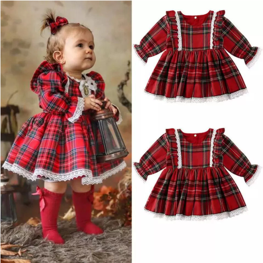 Toddler & Baby Girls Christmas Red Lace Dress – Elegant Holiday Party Dress for Kids